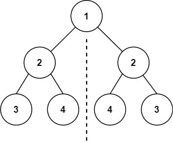 Given the root of a binary tree, check whether it is a mirror of itself (i.e., symmetric around its center).